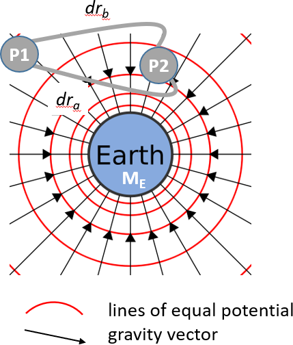 The physical fields are mostly governed by partial differential equations with differential operators in space and time. There are single derivatives in space \(\pdv{x}\) or time \(\pdv{t}\). All derivatives into all spatial dimensions are subsumed in the nabla operator \(\grad=(\pdv x, \pdv y, \pdv z)^T\). The (negative) gradient of a potential is the corresponding vector field with directions perpendicular to the isosurfaces into the direction of decreasing potential.
