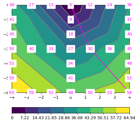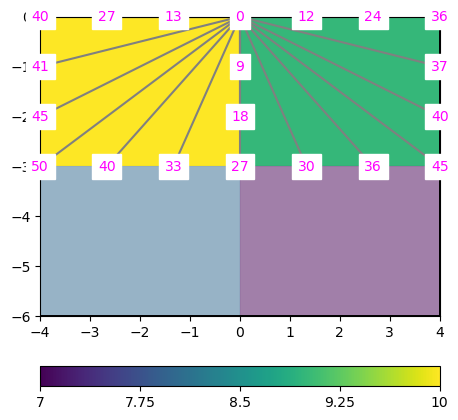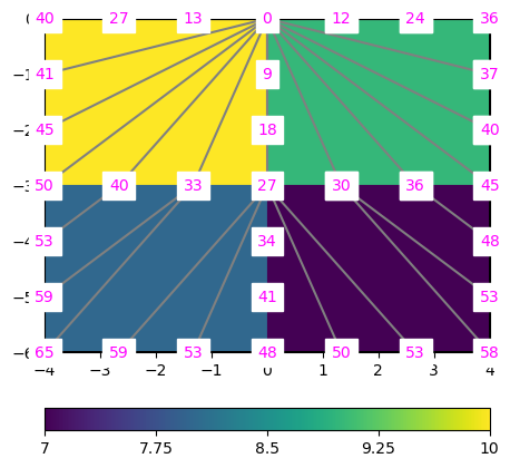 Finally, we have the traveltimes at all nodes, including the ray paths in the individual cells.