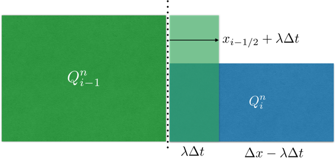 \[Q_i^{n+1} = Q_i^n - a\frac{\Delta t}{\Delta x} (Q_i^n-Q_{i-1}^N)\]